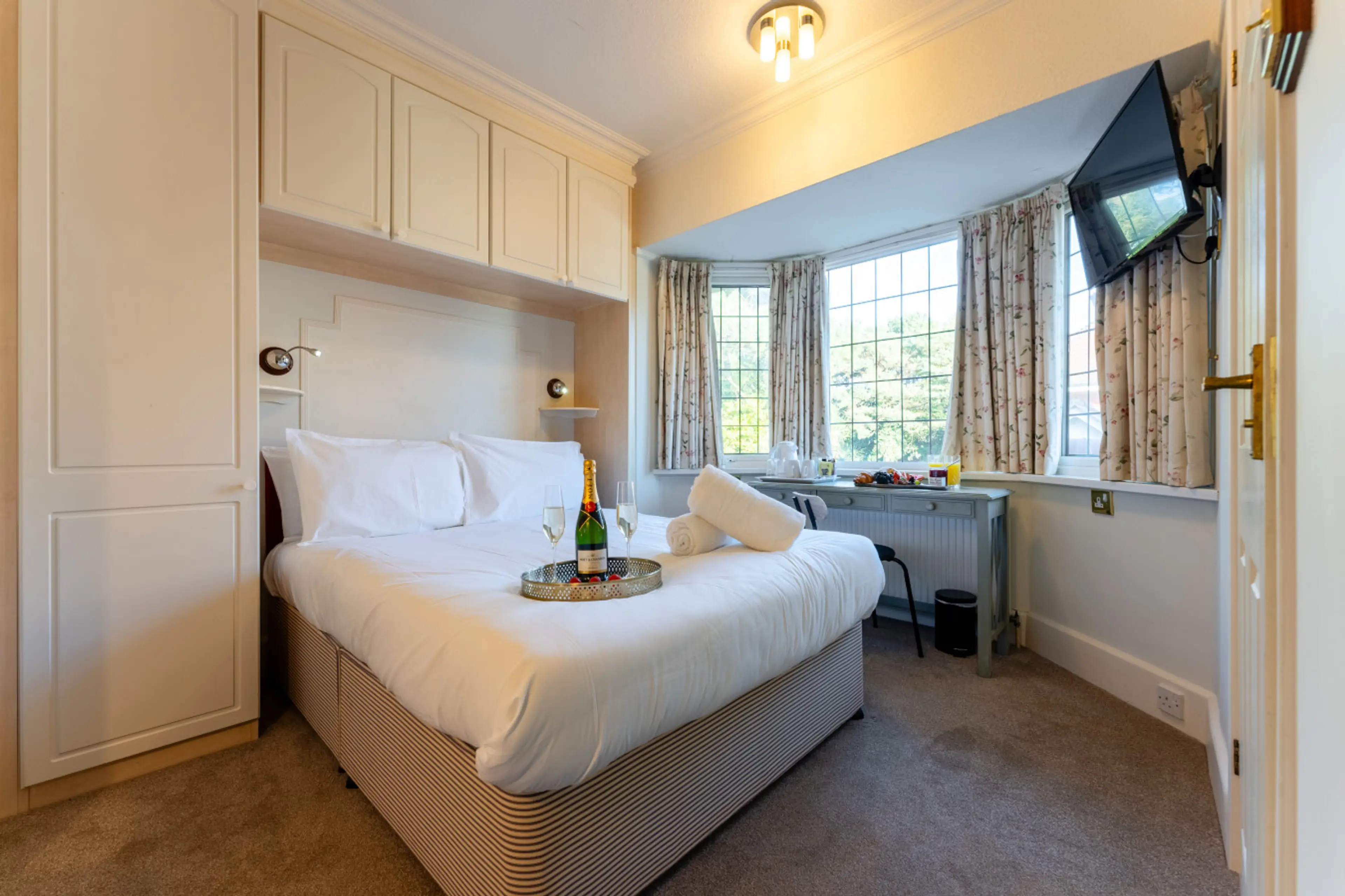 This double room on the first floor features a double bed, private bathroom (ensuite with shower, toilet and sink), flat-screen TV, office desk and separate fridge, ideal for business and leisure guests. Enjoy the peaceful communal garden and on-site parking for up to five vehicles, with additional ...